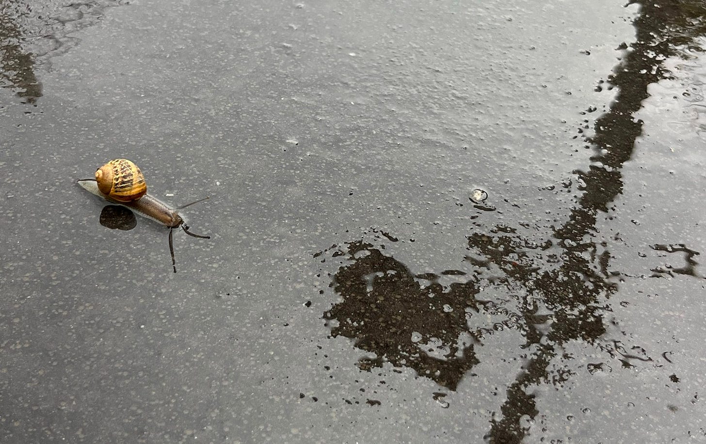 De las primeras semanas que estuve aquí en París, fui con Amanda a la house of braziI de los juegos olímpicos. Es el primer día que recuerdo la lluvia. Después de eso, han seguido muchos otros. (Aunque justo ahora mismo esté sentada en una cafetería donde hace 10 minutos daba el sol, con Daniela, mi compi de piso, mientras cada una teclea en su ordenador). Volviendo al primer día de lluvia, nada más salir del metro nos encontramos la calzada llena de caracoles. Caminamos con cuidado para no pisar ninguno. Saqué una foto al pensar que hacía mucho que no veía un caracol. Antes de aquel día de lluvia, realmente hacía mucho tiempo que no veía un caracol. Lo sentí algo casi de la infancia, ligado a un evento extraordinario en el patio del cole, o a el jardín en verano después de la lluvia. Le mandé una foto a Luna en la que le escribí; la vida lenta de parís! Y luego escribí más para mí; un poco de esperanza, porque en parís también hay cosas que van despacio.